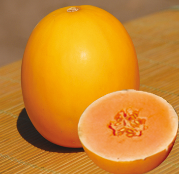 | 最新研制的高檔金黃皮、紅肉、優(yōu)質(zhì)、脆肉的脆梨類型新品種。中早熟大果型,成熟期35天左右。果實(shí)橢圓形,果皮金黃帶紅色,果肉橘紅色,肉厚4厘米左右,腔小,肉質(zhì)酥脆,汁多爽口,中心糖度18%左右,纖維極少,風(fēng)味純正,單瓜重可達(dá)3公斤以上,皮質(zhì)堅韌,極耐貯運(yùn),適合全國各地保護(hù)地和露地均可種植。 |