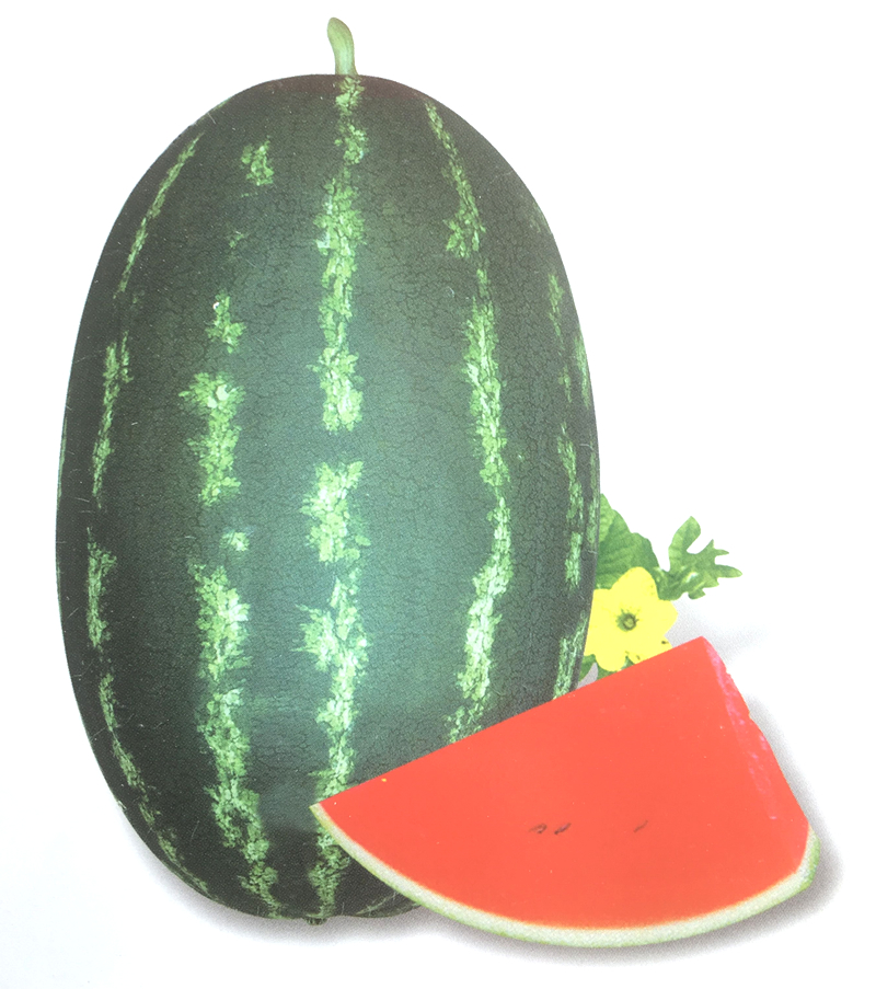 新育成中熟橢圓果西瓜品種。果皮底色深綠色上覆有淺綠色條帶,果實(shí)短橢圓形,果肉紅色,口感細(xì)嫩清爽,中心含糖量達(dá)12%以上,平均單果重10公斤左右。植株長(zhǎng)勢(shì)強(qiáng),抗病性好,適應(yīng)性廣。