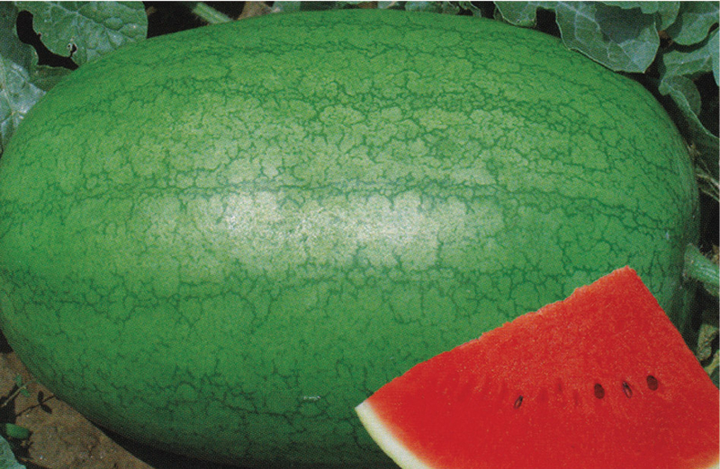 中早熟,全生育期100天左右,瓜坐穩(wěn)后30-32天成熟,長勢健壯,耐重茬能力強,易坐瓜,瓜型美觀,瓜皮綠色鮮亮有光澤,成熟后瓜皮不發(fā)白。膨瓜快,大紅沙瓤,含糖量高,口感特爽脆。瓜皮韌,不裂瓜,瓜大,高產(chǎn),單瓜重8-15公斤。適宜早春氣溫比較平和的區(qū)域地膜、露地或麥瓜套、椒瓜套栽培。